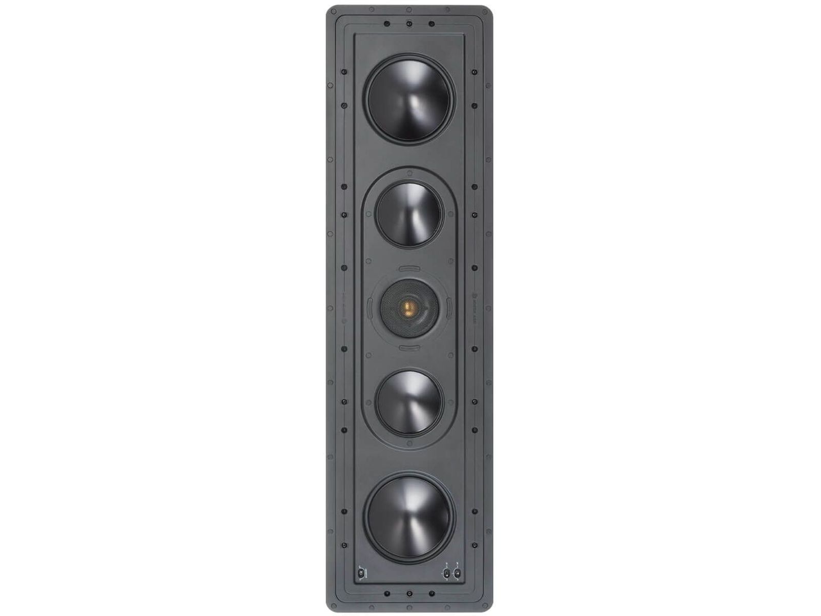 De CP-IW260X is voorzien van Monitor Audio's kenmerkende C-CAM (Ceramic-Coated Aluminium/Magnesium) conusmateriaal, ingezet in dubbele 6.5" basdrivers en dubbele 4" middentonen schrijlings op een Gold Dome-tweeter in een symmetrische 'B-M-T-M-B'-configuratie. Allemaal in een kast van gegoten polymeer.