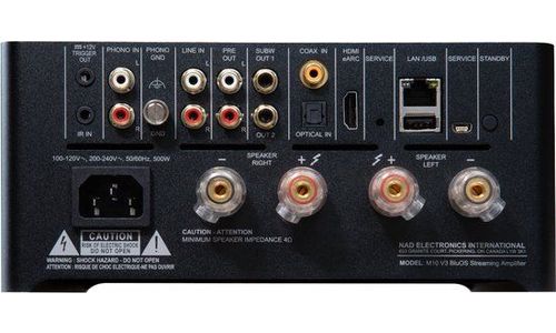 Naast de robuuste streamingmogelijkheden en de eerder genoemde MM phonotrap, heeft de M10 V3 een line-level analoge ingang en optische en coaxiale digitale ingangen, HDMI eARC en USB Type A ingangen voor het aansluiten van discspelers, gameconsoles, externe drives, media-adapters, flatpanel displays en andere componenten. Het apparaat beschikt ook over bidirectionele aptX HD Bluetooth.