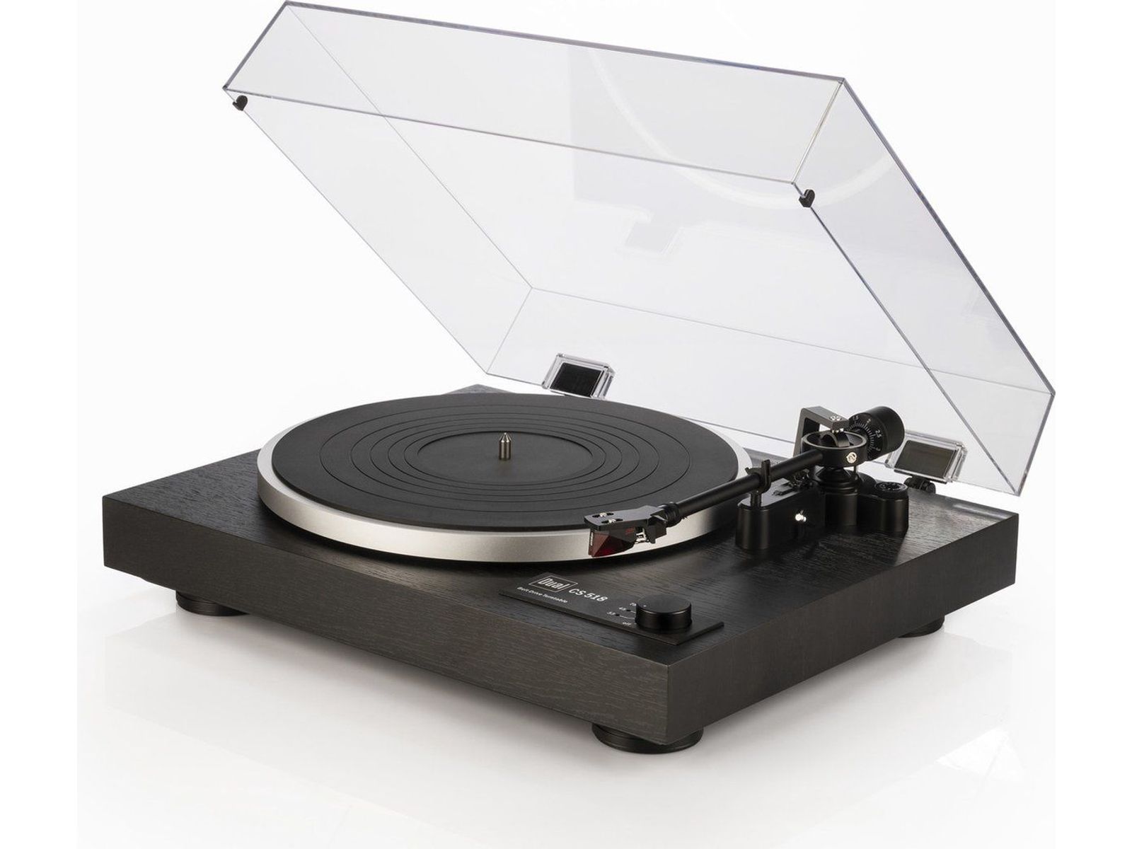 De CS 518, ideaal voor vinylliefhebbers, maakt indruk met een nauwkeurige dubbele cardanische toonarm en de fijnste pivotkogellagers. De klassieke dubbele toonarm geleidt zelfs de meest veeleisende elementen nauwkeurig en veilig voor een eersteklas luisterervaring.